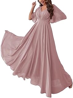 Alicepub V Neck Chiffon Dusty Rose Bridesmaid Dresses Long Formal Evening Gown For Wedding Guest With Flutter Sleeves Us16 Walmart Com